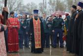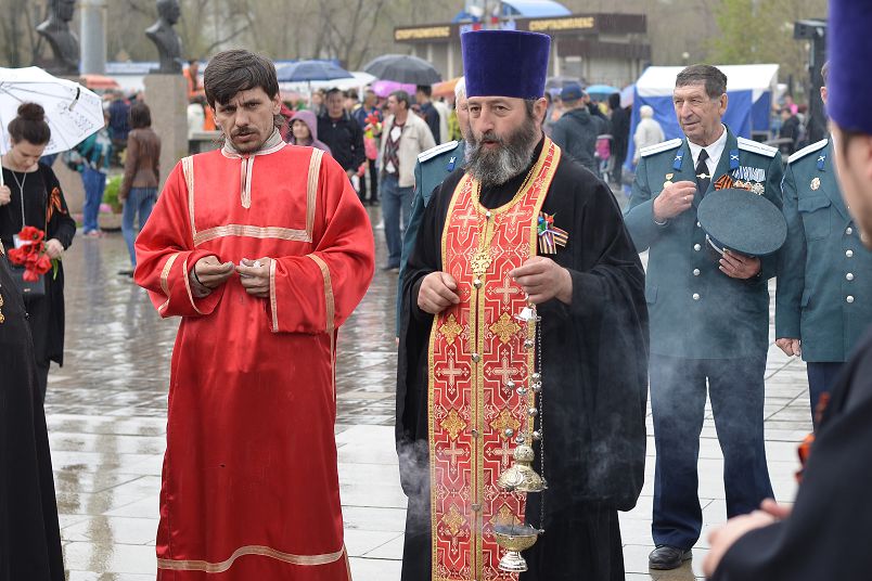 ОРСК. 9 мая 2017 г. В День Победы, в этот святой для всей страны праздник, благочинный Орского округа протоиерей Александр Куцов и священнослужители города совершили панихиду по погибшим воинам возле мемориала у Вечного огня.