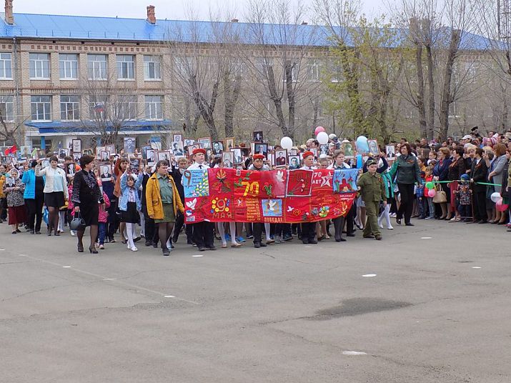 Шествие участников всероссийской акции «Бессмертный полк», демонстрация «Полотна Победы», минута молчания, возложение венков к памятной стеле, парад, выступление участников недавно проходившей акции «Вальс Победы» – праздничный митинг на площади Строителей в районном центре прошли ярко и торжественно.