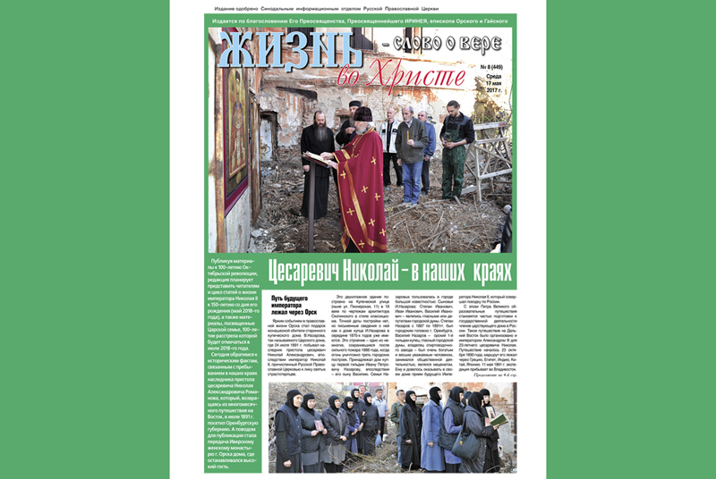 Публикуя материалы к 100-летию Октябрьской революции, редакция планирует представить читателям и цикл статей о жизни императора Николая II к 150-летию со дня его рождения, а также материалы, посвященные Царской семье, 100-летие расстрела которой будет отмечаться в июле 2018-го года. В очередном номере газета обратилась к историческим фактам, связанным с пребыванием в наших краях наследника престола цесаревича Николая Александровича Романова, который, возвращаясь из многомесячного путешествия на Восток, в июле 1891 г. посетил Оренбургскую губернию. А поводом для публикации стала передача Иверскому женскому монастырю г. Орска дома, где останавливался высокий гость. Читайте материал, подготовленный Виктором и Татьяной Базилевскими «Цесаревич Николай – в наших краях».