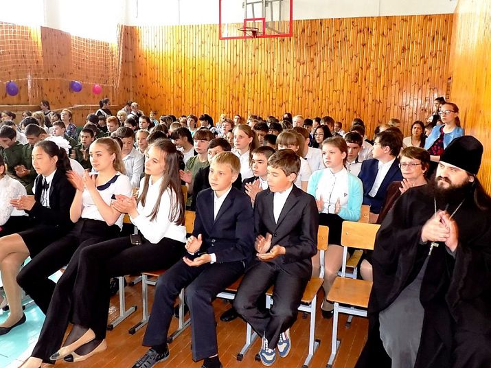СВЕТЛЫЙ. 23 мая 2017 г. В Светлинской общеобразовательной школе № 2 состоялось мероприятие, посвящённое приближавшемуся Дню славянской письменности и культуры. Почётным гостем праздника стал настоятель храма Покрова Пресвятой Богородицы посёлка Светлого иерей Михаил Рябинов.