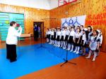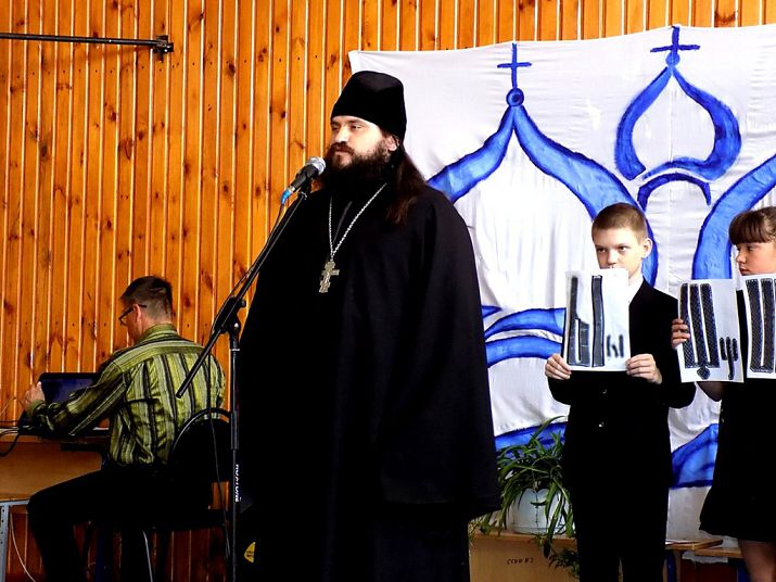 С приветственным словом к педагогам и учащимся школы обратился настоятель Покровского храма иерей Михаил Рябинов. Поздравив ребят и их наставников с наступающим днём памяти святых равноапостольных Кирилла и Мефодия, учителей Словенских, священник пожелал, чтобы наше юношество бережно относилось к родному языку, молодые люди не загрязняли бы его словами-паразитами, ненужными иностранными словами и помнили, что в основе созданной Словенскими учителями азбуке лежит духовное ядро славян, помогающей русской нации объединять вокруг себя другие народы.