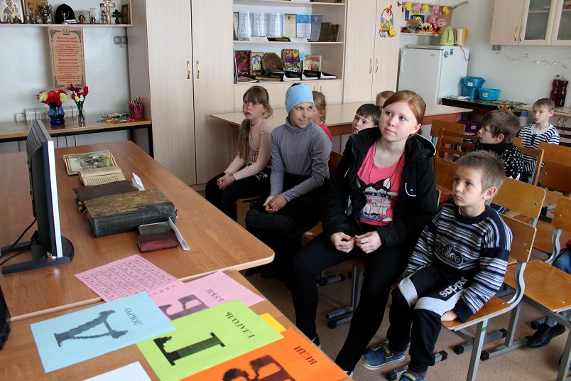 Мальчики и девочки впервые прикоснулись к уникальным старинным православным книгам: Евангелие от 1893 года, Новый Завет – 1897 г. По случаю Дня рождения азбуки дети соревновались в интеллектуальной эстафете, составляли слова, вспоминали совершённые добрые дела, раскрасили праздничные рисунки.