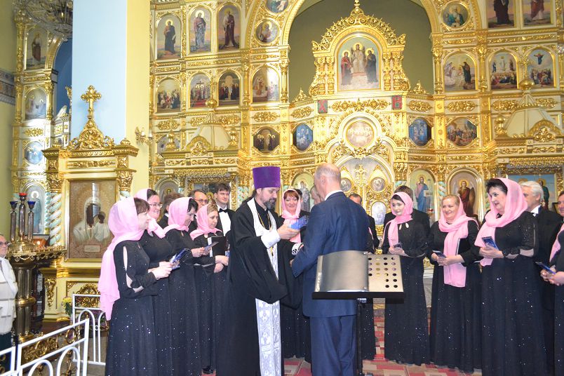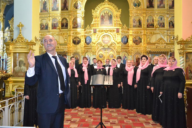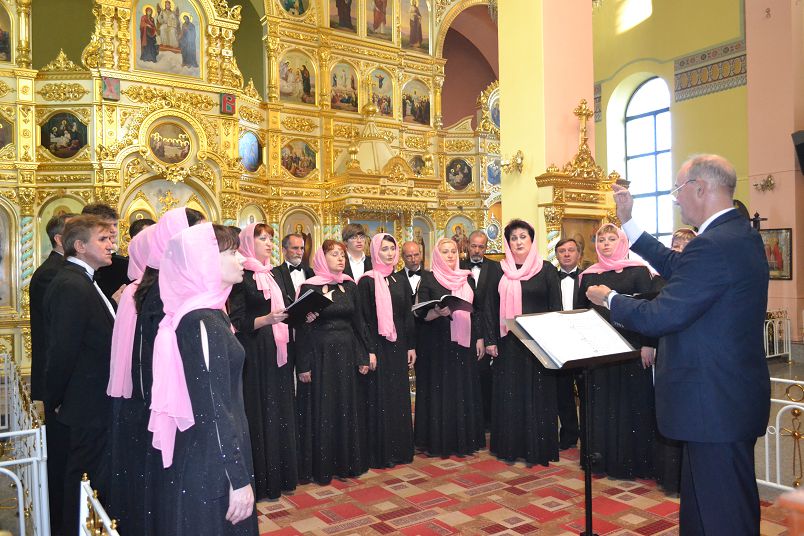 НОВОТРОИЦК. 24 мая 2017 г. Накануне праздника Вознесения Господня после вечернего богослужения в соборе святых апостолов Петра и Павла перед прихожанами с духовными песнопениями выступил муниципальный камерный хор г. Новотроицка под руководством Виктора Штарка.