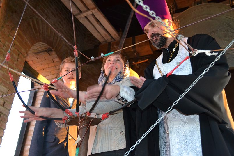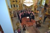 По окончании концерта настоятель храма протоиерей Сергий Кваша поблагодарил Виктора Антоновича и его сотрудников за прекрасное исполнение, поздравил всех присутствующих с праздником, и пригласил дорогих гостей на колокольню, чтобы звоном колоколов прославить Вознесшегося на небо Господа нашего Иисуса Христа.