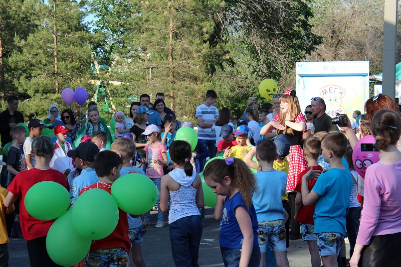 У главной сцены Центрального парка веселые аниматоры и клоуны под любимые детские мелодии провели зажигательную программу с песнями, танцами, стихами и конкурсами. Более 50 воспитанников детского дома вместе с другими детьми наперебой показывали свои способности, а самые активные получали призы и сувениры на память.