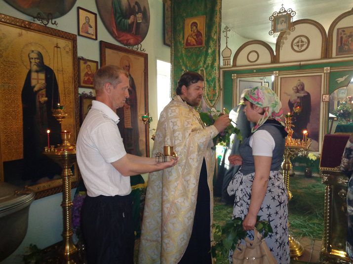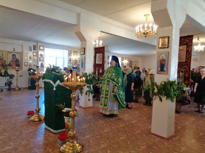 И приходской, и народный хоры из храма вмч. Пантелеимона участвовали в службе двух храмов, создав праздничное настроение в великий день Святой Троицы. С большой духовной радостью восприняли прихожане совместное служение двух священников, и в храмах царила особая молитвенная атмосфера. В Троицын день особо радовали и украшения храмов ветвями деревьев, свежескошенной травой, цветами.