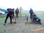 А в посёлке Коскуль произошло ещё одно памятное и трогательное событие. Во время прошлогоднего крестного хода его участникам стало известно, что в годы Великой Отечественной войны на окраине этого населённого пункта в общей могиле были похоронены около тридцати маленьких детей, эвакуированных из блокадного Ленинграда. По одной версии ребятки были привезены в существовавшее здесь казахское поселение и умерли от голода в результате того, что местные жители не особо кормили детей. Другие источники подсказывают, что ленинградцев везли в Кустанай (Республика Казахстан) и они умерли по дороге. Так или иначе, а сохранились более-менее точные сведения о месте захоронения. На нём участники крестного хода установили памятный крест и оградку. В память о погибших детях иерей Михаил здесь же отслужил заупокойную литию. Примечательно, что приезд в посёлок Коскуль, облагораживание безымянной могилы и поминовение детей произошло 12 июня – в День России. Идеи патриотизма, любви к Родине, почитания её исторического и духовного наследия, которые отражает этот государственный праздник, совпали с духом произошедшего в тот день в Коскуле памятного события, с его причастностью к истории Великой Отечественной войны.