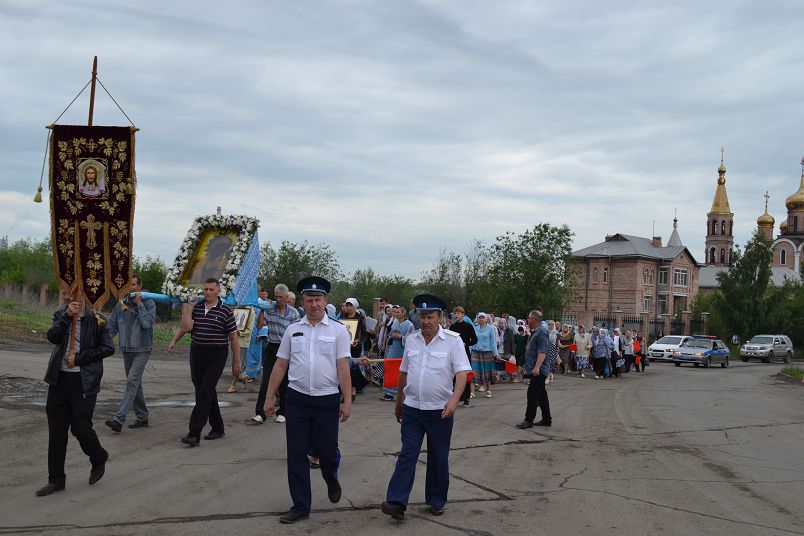 Возглавил крестный ход настоятель храма св. ап. Андрея Первозванного иерей Евгений Селиверстов. По традиции все присутствующие прошли под иконой Пресвятой Богородицы «Табынская», которая является покровительницей Оренбургского края и Башкирии. Верующие испрашивают благословения у Царицы Небесной, молят о помощи и защите семей и Отчизны. По вере и усердному молению молящиеся получают помощь и утешение от Царицы Неба и Земли.