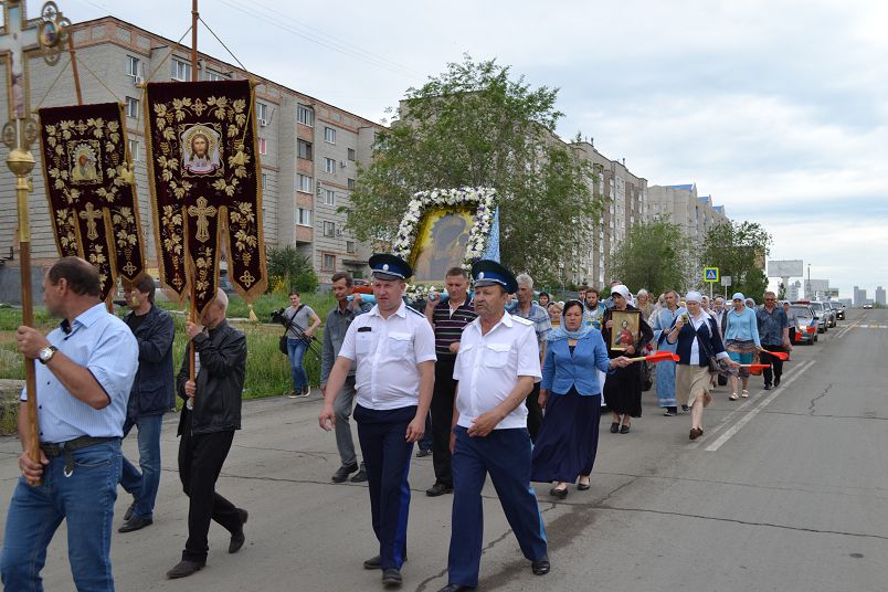По окончании Божественной литургии прошёл водосвятный молебен, а затем прихожане храма совершили крестный ход по городу Новотроицку. Табынскую икону Божией Матери, украшенную цветами, под молитвенное пение пронесли по улицам города. В этом православном шествии приняли участие воспитанники воскресной школы имени святого благоверного князя Александра Невского при Петропавловском соборе и члены Новотроицкого казачьего общества.