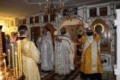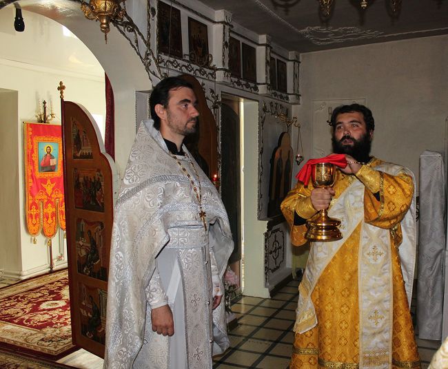 Богослужение совершали: благочинный Гайского округа, настоятель кафедрального собора св. прав. Иоанна Кронштадтского протоиерей Игорь Никифоров, настоятель храма святых апостолов Петра и Павла иерей Виталий Кудрявцев и диакон кафедрального собора св. прав. Иоанна Кронштадтского Димитрий Патоска.