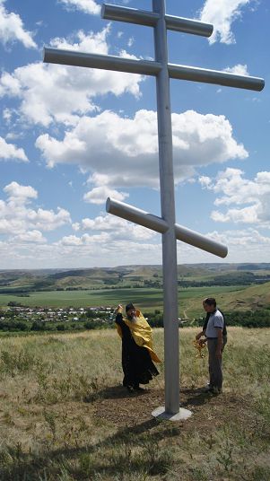 ПЕРВОМАЙСК. 7 июля 2017 г. Духовник епархии, благочинный Кувандыкского округа, настоятель храма Покрова Пресвятой Богородицы протоиерей Симеон Антипов и клирик храма иеромонах Антоний (Ткачев) освятили поклонный крест.