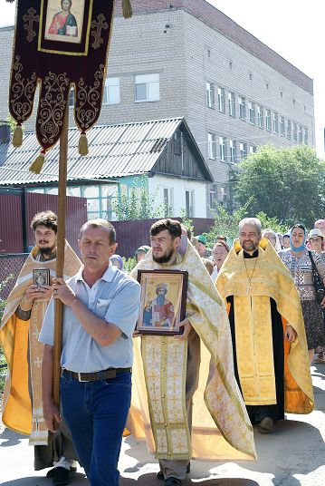 По окончанию праздничной литургии духовенство города и прихожане прошли крестным ходом к реке Урал, где, соборно помолившись, священнослужители совершили малое освящение воды. Крестный ход всегда дает возможность в во многом проявить самоотверженность, силу духа и, конечно, ощутить соборность сопричастность духовному торжеству. По случаю праздника протоиерей Александр Куцов обратился к верующим с проповедью о жизни и подвиге святого равноапостольного князя Владимира, его значении для каждого православного русского человека.
