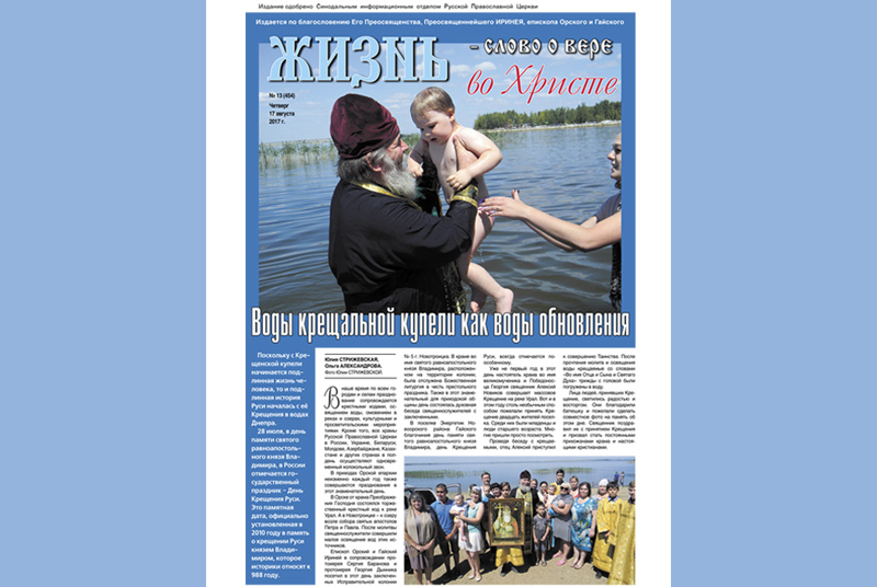 Номер открывает публикация «Воды крещальной купели как воды обновления». Авторы Юлия Стрижевская и Ольга Александрова рассказывают о том, как в Орской епархии отмечали день Крещения Руси.