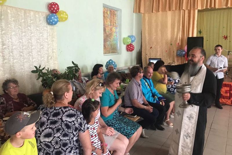 КРАСНОЩЕКОВО. 19 августа 2017 г. В день двунадесятого праздника Преображения Господа Бога и Спаса нашего Иисуса Христа духовник епархии, благочинный Кувандыкского округа, настоятель храма Покрова Пресвятой Богородицы г. Кувандыка протоиерей Симеон Антипов приехал на праздник в честь 85-летия села.