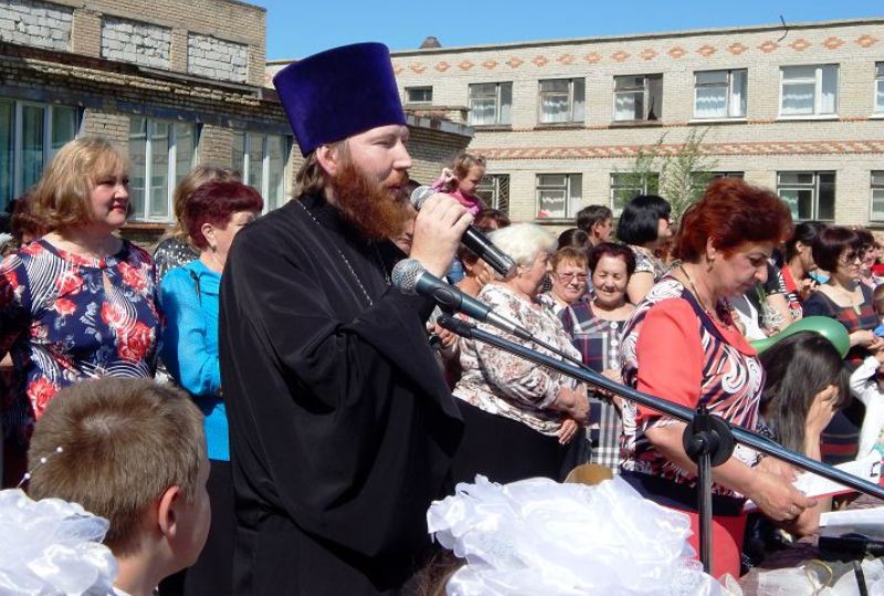 ОРСК. 1 сентября 2017 г. Настоятель Михаило-Архангельского храма иерей Геннадий Новиков принял участие в школьной линейке, посвященной первому звонку.