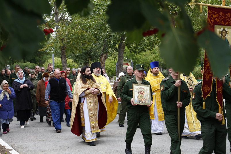 ЯСНЫЙ. 12 сентября 2017 г. В день, когда Святая Церковь празднует перенесение мощей святого благоверного князя Александра Невского (1724), в храме св. блгв. вел. кн. Александра Невского ЗАТО п. «Комаровский» Ясненского городского округа состоялась Божественная литургия и крестный ход.