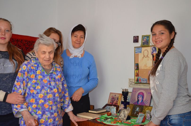 По окончании занятий в воскресной школе, лучшие ученицы в сопровождении педагога Галины Николаевны Бобрусовой, поздравили с праздником прихожанок, умудрённых прожитыми годами. Виновницы торжества, к сожалению, по состоянию здоровья уже не в силах посещать храмовые богослужения.