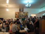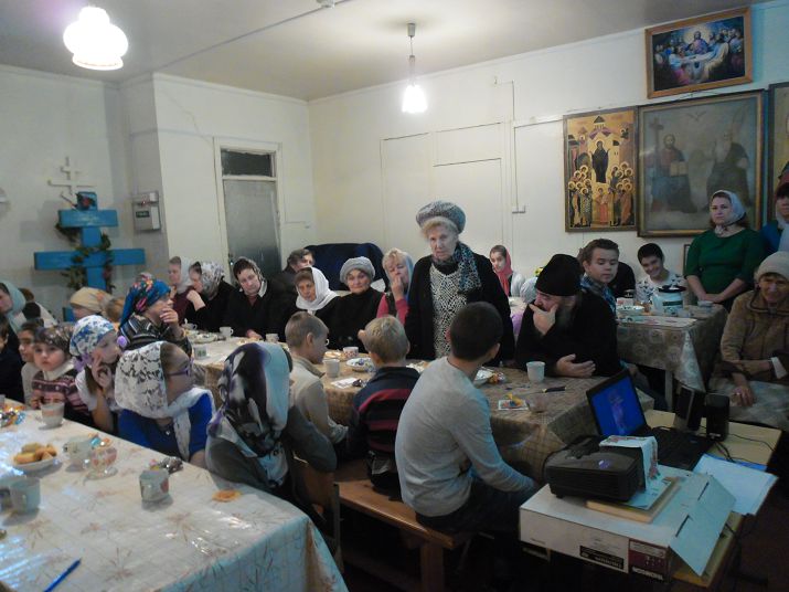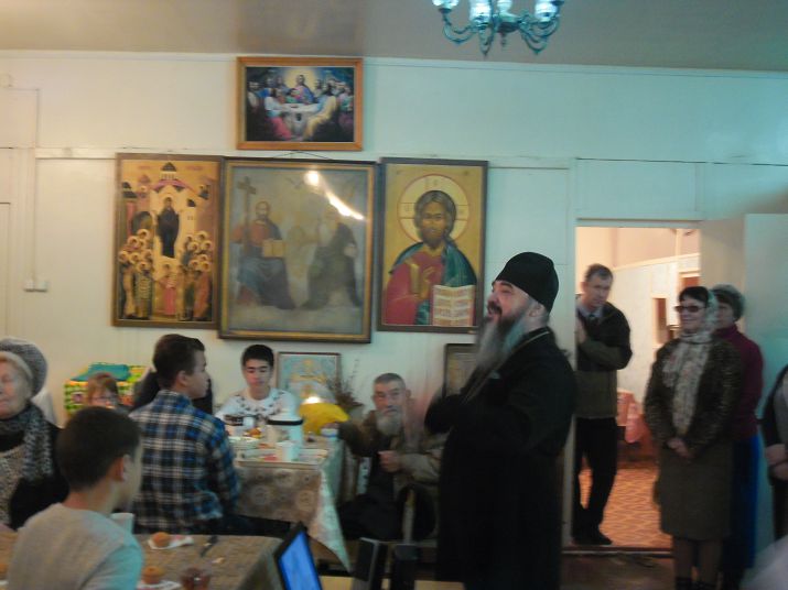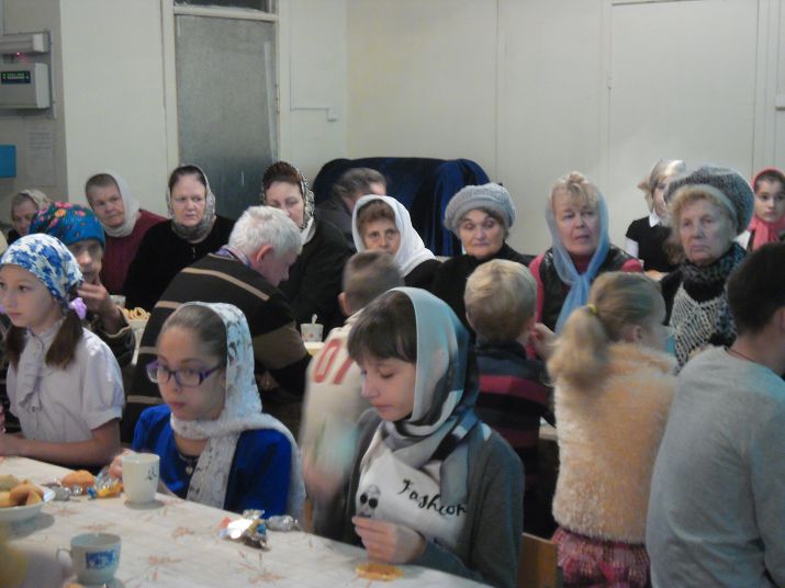 Около сорока пяти детей и двадцати приглашенных ветеранов – бывших служителей храма и продолжающих нести посильную помощь на различных послушаниях – после общей молитвы заняли места за столами.