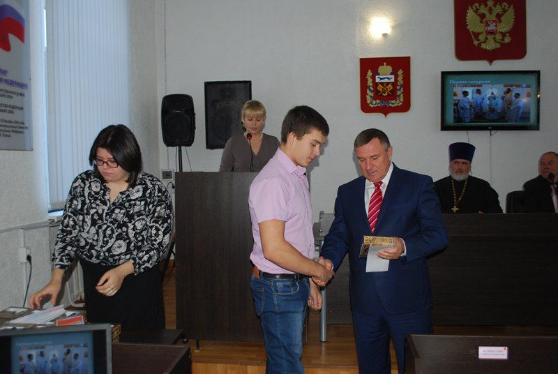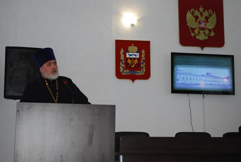 Священник Вячеслав Кочкин в своём выступлении призвал молодых людей с честью отдать свой долг Родине и, в качестве примера беззаветного служения Отчизне, рассказал о воинском служении пути святого праведного воина Феодора Ушакова. 15 октября исполняется 200 лет со дня его кончины. В этот день священник пригласил призывников прийти помолиться в храм, который расположен в Адамовке и освящен во имя этого святого – праведного воина Феодора Ушакова, и с Божиим благословением начать воинскую службу.