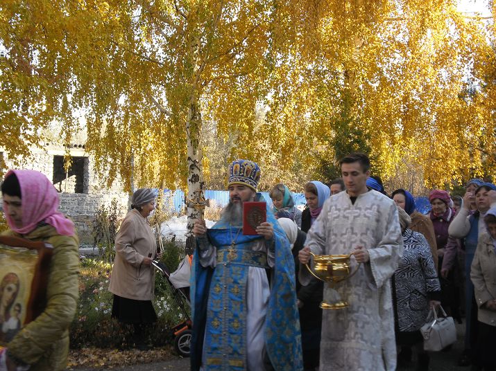 КУВАНДЫК. 14 октября 2017 г. В день великого праздника Покрова Пресвятой Владычицы нашей Богородицы и Приснодевы Марии духовник епархии, благочинный Кувандыкского округа, настоятель храма Покрова Пресвятой Богородицы протоиерей Симеон Антипов и клирик храма, иеромонах Антоний (Ткачев) совершили Божественную литургию и крестный ход вокруг храма.