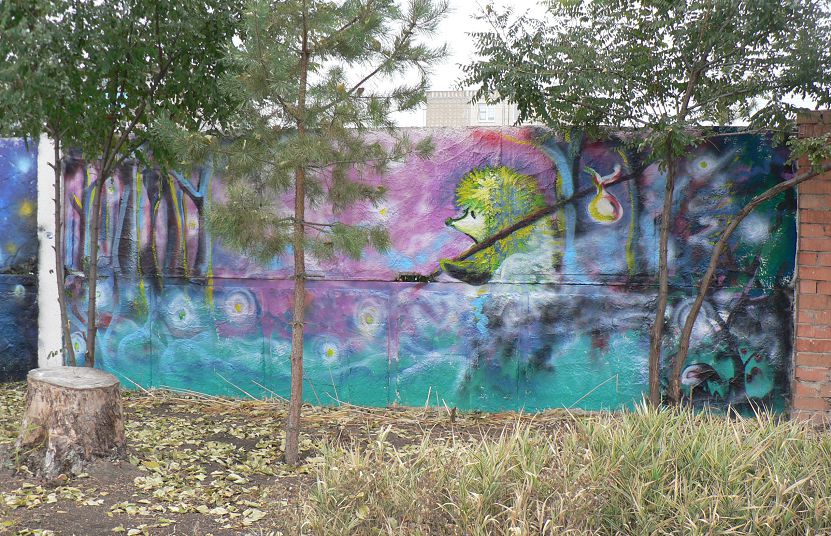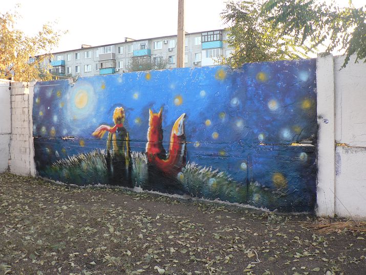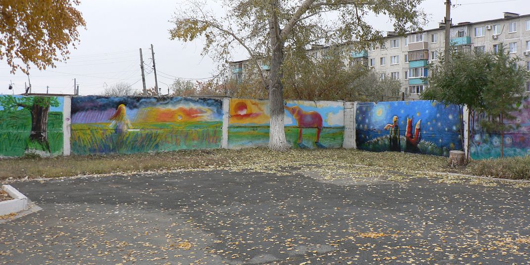 ГАЙ. 5 октября 2017 г. Добровольцы группы «Особенное Рождество» сделали детям необычный подарок: за два дня расписали восемь железобетонных пролетов забора, огораживающего территорию детского дома-интерната.