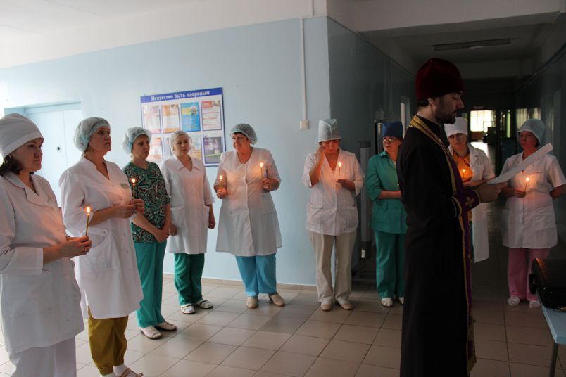 После молебна отец Виталий благословил сотрудников и пожелал Божией помощи и терпения в ответственном служении. Священник объяснил роль православной веры в жизни человека, подчеркнул необходимость внутренней духовной жизни. В память о событии батюшка передал коллективу медиков иконы и православные брошюры.