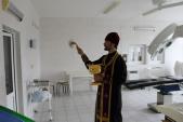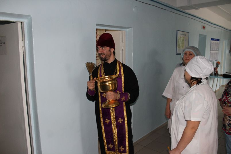 Затем иерей Виталий Кудрявцев прошел по отделению и окропил все помещения святой водой.