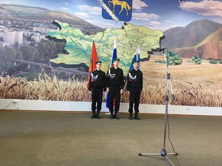 Началось торжественное мероприятие выносом флага Российской Федерации. Право внести флаг предоставили военно-патриотическому объединению «Лидер» (школа № 2, руководитель – С.Г. Вахитова). В этот день вспомнили воинов, погибших в годы Великой Отечественной войны. В память о них и всех, погибших в наши дни, защищая Родину, призывники Владислав Новокшанов и Искандер Динасилов возложили цветы на Холме Славы.