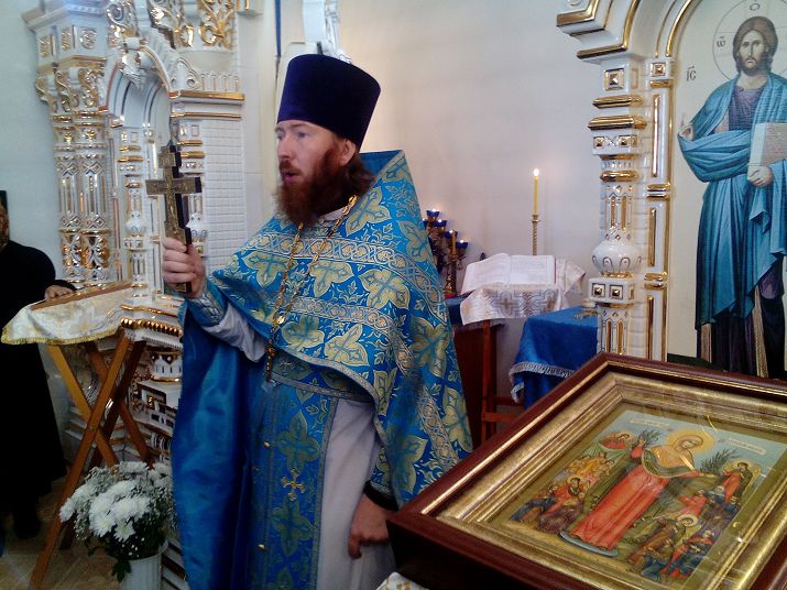 В канун праздника настоятель храма иерей Геннадий Новиков и клирик храма иерей Сергий Новиков совершили всенощное бдение с чтением акафиста Пресвятой Богородице.