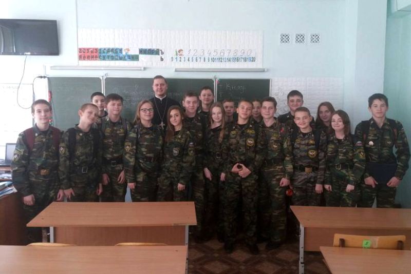 ОРСК. 13 ноября 2017 г. Настоятель храма целителя Пантелеимона г. Орска иерей Александр Курсаков провёл урок мужества в седьмом классе школы № 43.