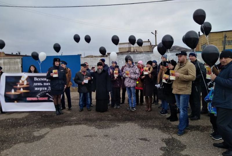 Всем водителям вручили буклеты с девятью «православными правилами» дорожного движения, суть которых – молитва и благодарение Господу, любовь к ближним – всем, кто рядом на дороге. Минутой молчания почтили память всех жертв дорожных аварий. Затем с сигналами автомобилей и патрульного автомобиля ДПС участники акции отпустили в пасмурное небо 53 черных и три белых шара, символизирующих количество погибших в Кувандыке за пять лет и напоминающих о скорби этого дня.
