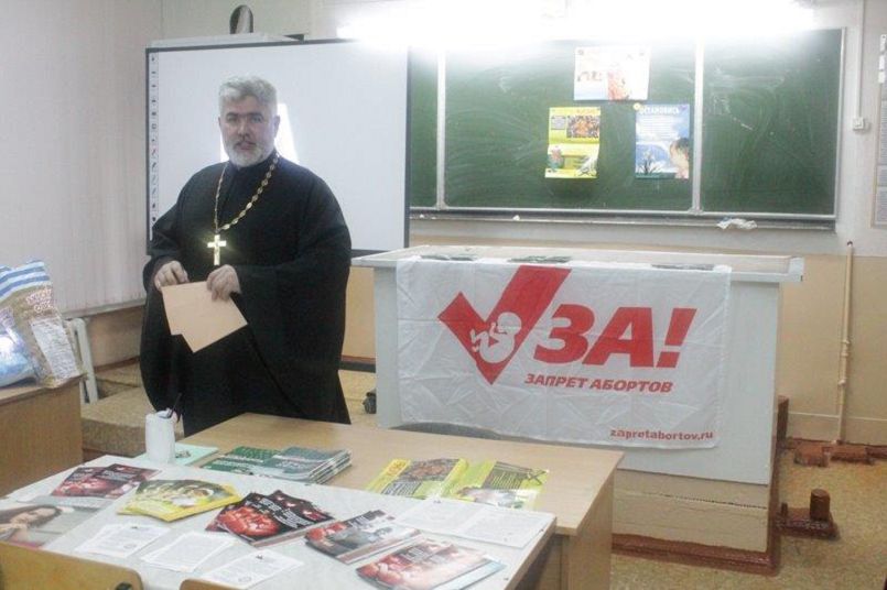 Первая встреча состоялась в Брацлавской средней школе Адамовского района. Священник рассказал о губительных последствиях, которые несет аборт для души и тела. По официальным данным в России каждый год от необъявленной войны погибает около миллиона младенцев.
