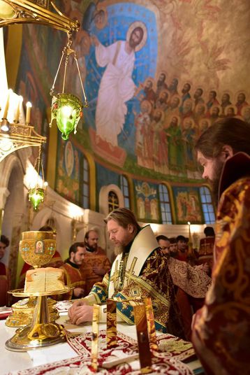 Накануне состоялось всенощное бдение, во время которого студенты первого курса получили архипастырское благословение на ношение подрясников.