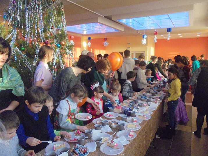 После концерта для всех участников и гостей был накрыт праздничный стол, а ребятам батюшка вручил рождественские подарки.