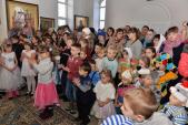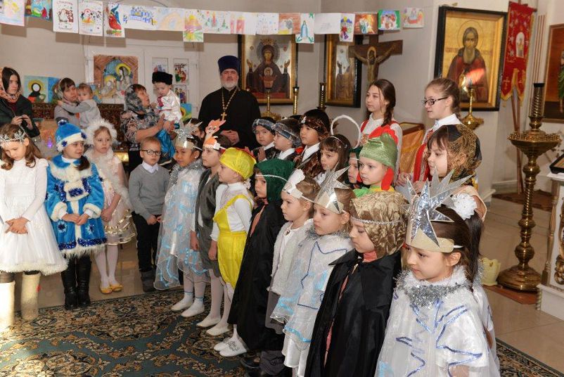 Подготовка к празднику начинается задолго до него– весь ноябрь и декабрь маленькие прихожане рисовали и делали поделки, посвящённые Рождению Богомладенца. В сам же праздничный день выставка детского творчества украсила храм и вызывала интерес не меньший, чем нарядная пушистая ёлка, высокая, под самый потолок храма! В творческом конкурсе участвовали больше полусотни ребят и взрослых. Самому маленькому участнику всего три годика. А необычную театральную постановку готовили учащиеся районного дома развития детского и юношеского творчества.