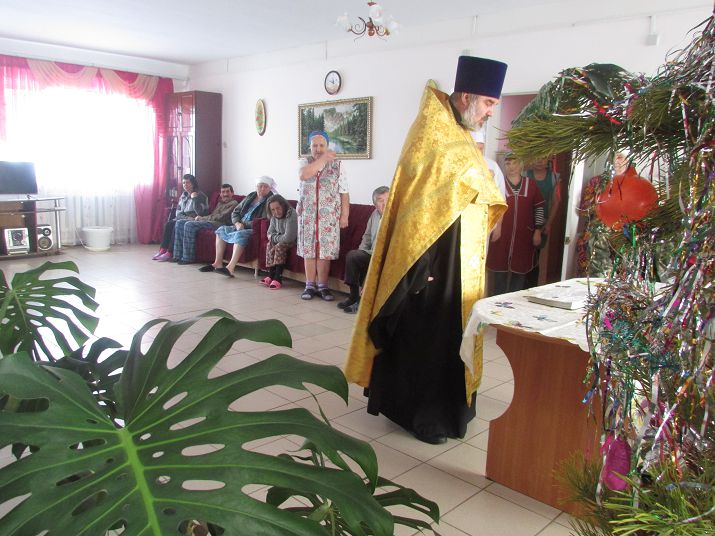 Так, настоятель Свято-Георгиевского храма уже много лет духовно окормляет подопечных дома престарелых в этом отдаленном уголке Оренбуржья. Сегодня отец Кирилл совершил молебен о здравии в доме милосердия, поздравил насельников и рабочий персонал с Рождеством Христовым, провел духовную беседу об этом великом празднике и вручил подарки.