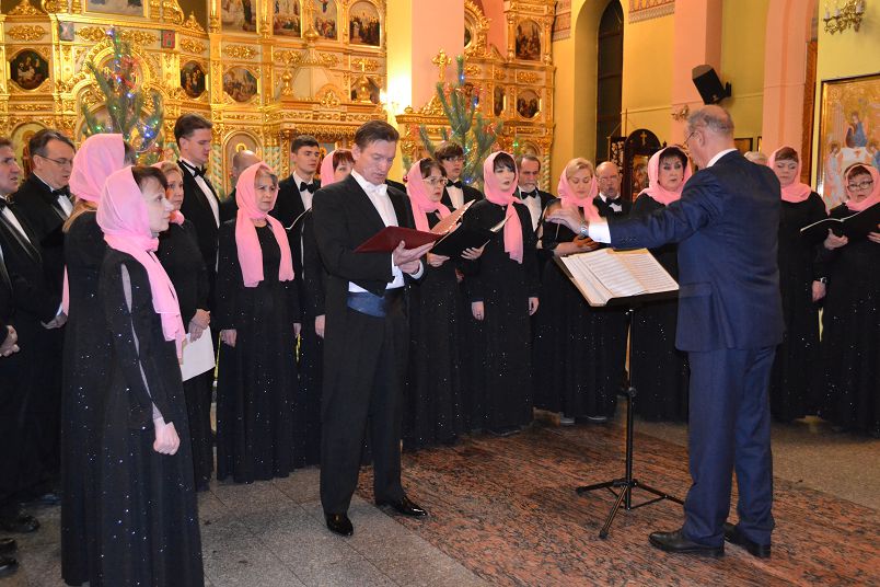 НОВОТРОИЦК. 13 января 2018 г. Накануне празднования Обрезания Господня после вечернего Богослужения перед прихожанами Петропавловского собора с духовными песнопениями выступил муниципальный камерный хор под управлением председателя городского комитета по культуре Виктора Штарка.