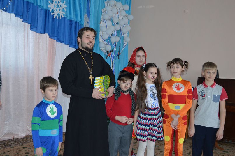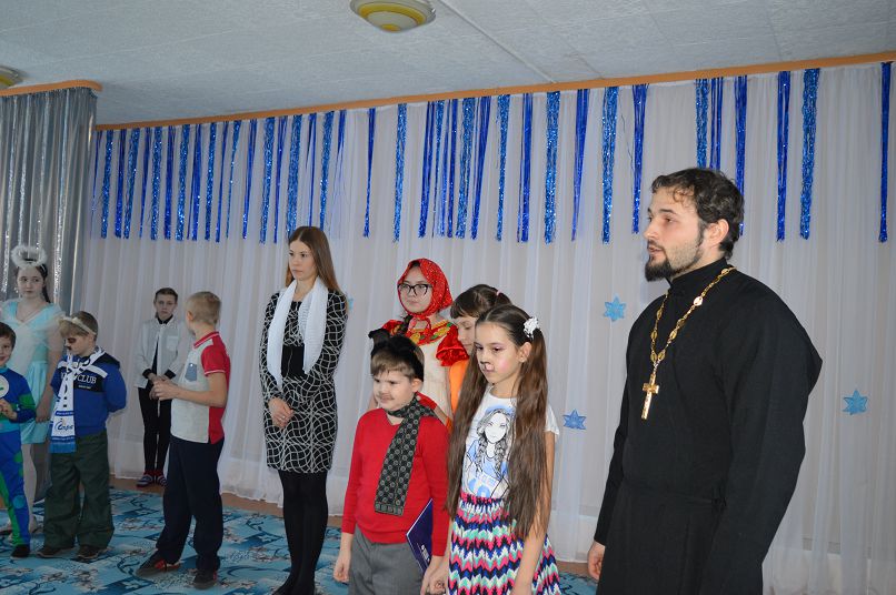 К малышам ребят из воскресной школы привел благочинный Медногорского округа иерей Максимом Малютой для того, чтобы они могли поделиться рождественской радостью с самыми маленькими – показать замечательный спектакль, в котором в доступной форме повествуется о Празднике, и поиграть с ними в разные веселые игры.