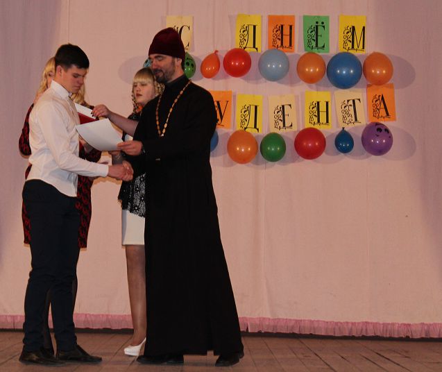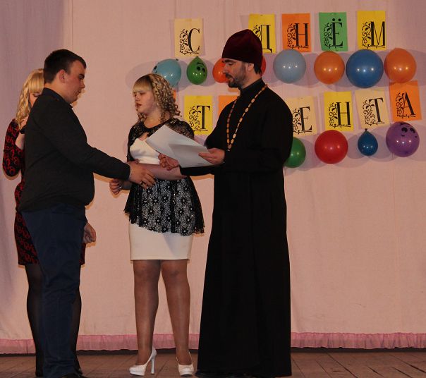 На торжественное мероприятие прибыли глава Гайского городского округа О.Ю. Папунин, заместитель Главы по социальным вопросам М.Ю. Ильина, председатель городского Совета депутатов Ф.М. Минивалеев и другие. К собравшимся обратился О.Ю. Папунин. Он отметил, что студенческие годы – лучший период в жизни, пора юности и мечтаний: «Сейчас ваша главная цель – получить образование и стать не только хорошими специалистами, но и достойными людьми. С гордостью носите почетное звание студентов, впитывайте в себя знания и опыт ваших наставников, становитесь первоклассными специалистами, порядочными людьми и патриотами. Вы должны всегда помнить, что вы – наша опора, наше будущее!» В день памяти святой мученицы Татианы и с нею в Риме пострадавших по окончании Божественной литургии настоятель Петропавловского храма иерей Виталий Кудрявцев на мероприятии Гайского филиала Орского индустриального колледжа вручил почетные грамоты студентам за активное участие в общественной жизни колледжа и города. Отец Виталий поздравил всех студентов с праздником и пожелал им успехов во всех начинаниях, выразил слова надежды на то, что ребята и в дальнейшем будут отличаться прилежанием и радовать своими достижениями.