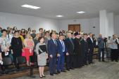 Протоиерей Вячеслав Кочкин произнёс глубоко тронувшие присутствующих слова благодарности за подвиг учительского труда, упомянул о высоком призвании педагогов и передал благословение правящего архиерея Орской епархии на дальнейшие труды.