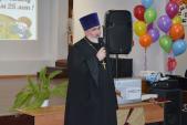ОРСК. 2 февраля 2018 г. Настоятель храма св. вмч. и целителя Пантелеимона протоиерей Вячеслав Кочкин по приглашению директора средней школы № 38 г. Орска Галины Александровны Холодовой принял участие в празднике в честь 25-летия учебного заведения.