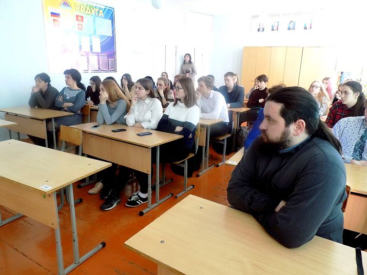 СВЕТЛЫЙ. 8 февраля 2018 г. Настоятель храма Покрова Пресвятой Богородицы посёлка Светлого иерей Михаил Рябинов показал документальный фильм об алкоголизме учащимися старших классов Светлинской общеобразовательной школы № 1.