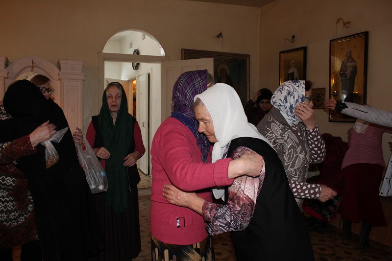 После этого все собравшиеся, подходя к настоятелю, просили прощения и целовали крест. Затем, поклонившись друг другу, от всего сердца, прощали взаимные обиды и согрешения.