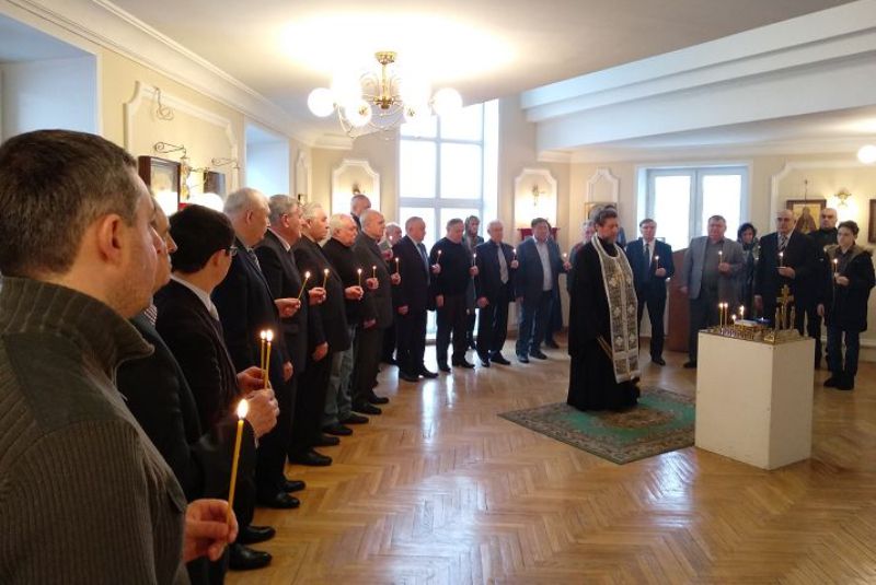 В здании Представительства Оренбургской области при Правительстве Российской Федерации с 12 февраля у иконы Христа Спасителя лежат гвоздики и горит лампада, зажжённая протоиереем Димитрием Солониным после проведенной им панихиды для сотрудников Представительства и членов землячества.