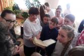 14 марта – День православной книги, поэтому важной частью мероприятия стала выставка книг на церковно-славянском языке. Ребята смогли полистать уникальные фолианты, рассмотреть начертания букв, увидеть знакомые слова в их «старинных одеждах». А ещё попробовали сами изображать старинные буквицы.