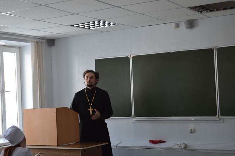 МЕДНОГОРСК. 26 марта 2018 г. В рамках сотрудничества Медногорского благочиния с образовательными учреждениями города, благочинный иерей Максим Малюта провел лекцию в Медногорском медицинском колледже.