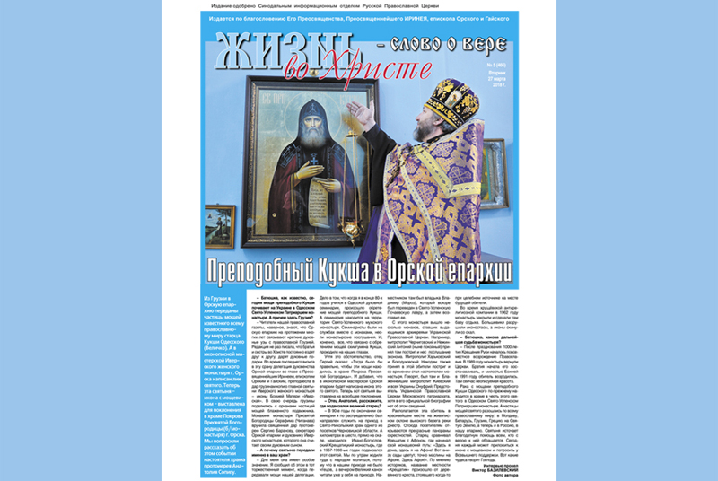 Из Грузии в Орскую епархию переданы частицы мощей известного всему православному миру старца Кукши Одесского (Величко). А в иконописной мастерской Иверского женского монастыря г. Орска написан лик святого. Теперь эта святыня – икона с мощевиком – выставлена для поклонения в храме Покрова Пресвятой Богородицы (б/монастыря) г. Орска. Об этом событии читайте интервью Виктора Базилевского с настоятелем храма протоиереем Анатолием Сопигой «Преподобный Кукша в Орской епархии». На одной из следующих страниц – начало жития этого святого.