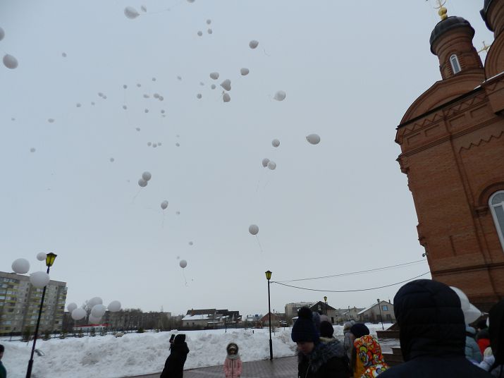 Вечером жители города, несмотря на дождь и холод, собрались, чтобы выразить сочувствие родным погибших. Никто не произносил речей, только в 6 часов вечера люди отпустили в небо белые шары. Всем нам остаётся только молиться, чтобы родным и близким тех, кто безвременно ушел из жизни, дал Бог сил пережить эту страшную трагедию.