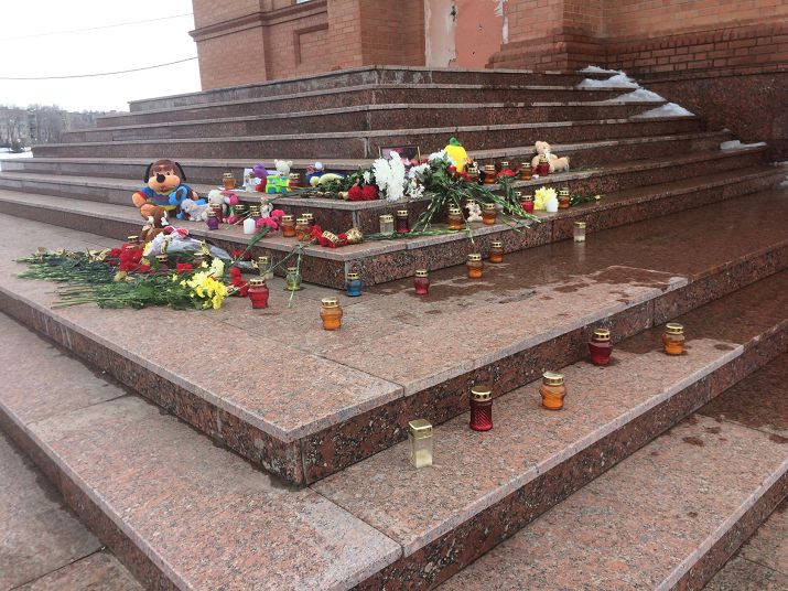 Панихиду по погибшим в результате пожара совершил настоятель храма протоиерей Игорь Никифоров. На ступенях верхнего храма организовали стихийный мемориал со свечами, лампадами, куда люди принесли игрушки и цветы.
