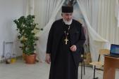 Урок начал настоятель Свято-Пантелеимоновского храма протоиерей Вячеслав Кочкин. Отец Вячеслав в простых и понятных детям образах рассказал о чертах евангельских жен-мироносиц – заботе, верности, любви. А также поздравил всех присутствующих женщин с праздником святых Жен-мироносиц.